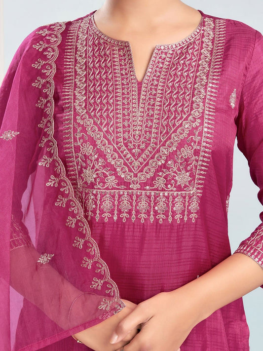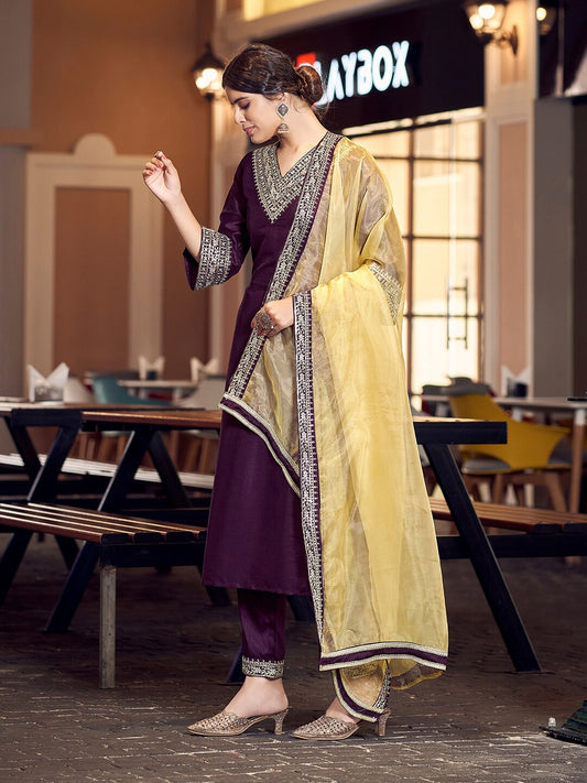 Skylee Ethnic Motifs Thread Work Kurta with Trouser & Dupatta