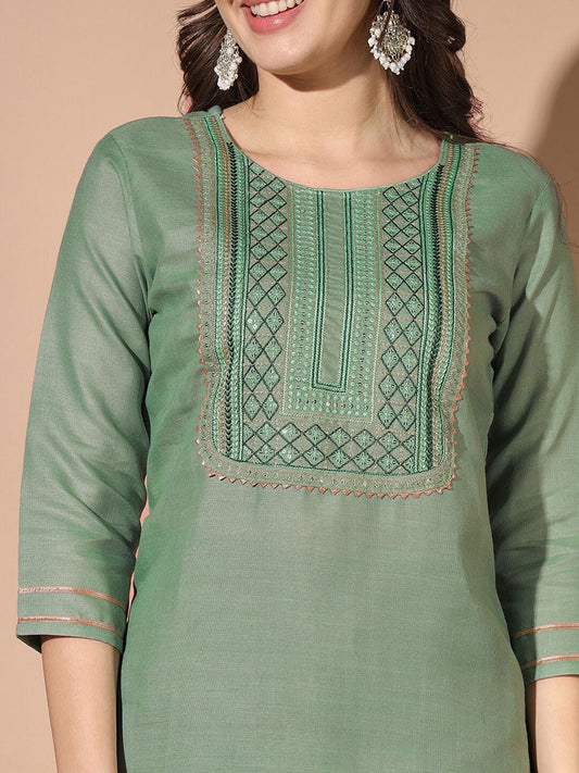 Skylee Geometric Embroidered Thread Work Kurta with Trouser & Dupatta