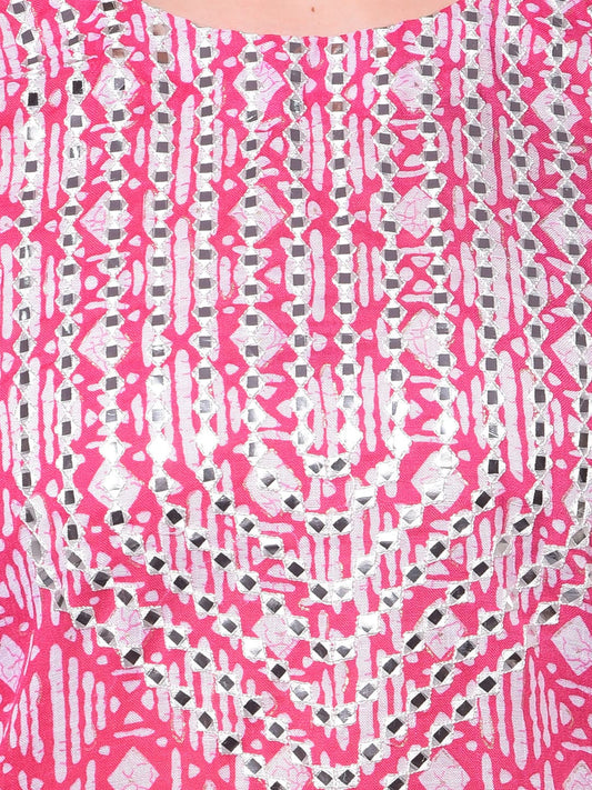 Dollar Missy Women Pink Geometric Printed Mirror Work Straight Kurta