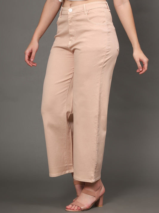 AngelFab Women Beige Relaxed Fit High-Rise Cropped Cotton Jeans