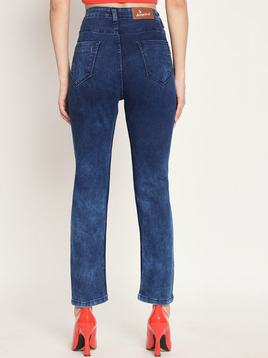 AngelFab Women Navy Blue Straight Fit High-Rise Cotton Jeans