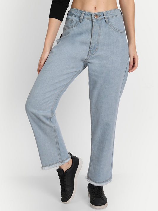 AngelFab Women Blue Straight Fit High-Rise Cotton Jeans