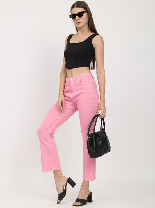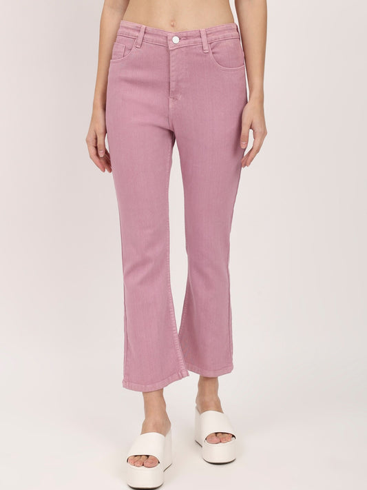 AngelFab Women Comfort Bootcut High-Rise Cropped Cotton Jeans