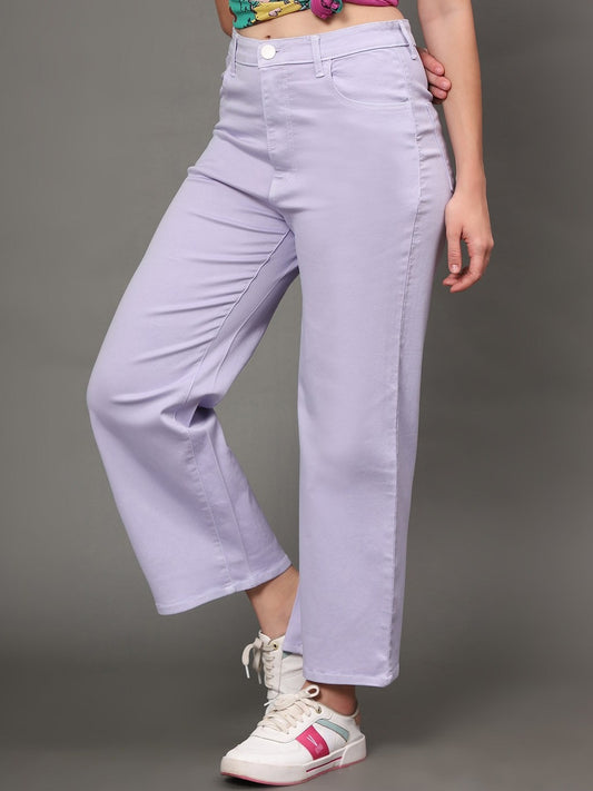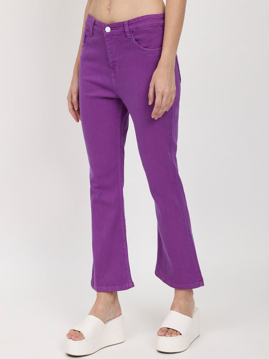 AngelFab Women Purple Relaxed Fit High-Rise Cropped Cotton Jeans