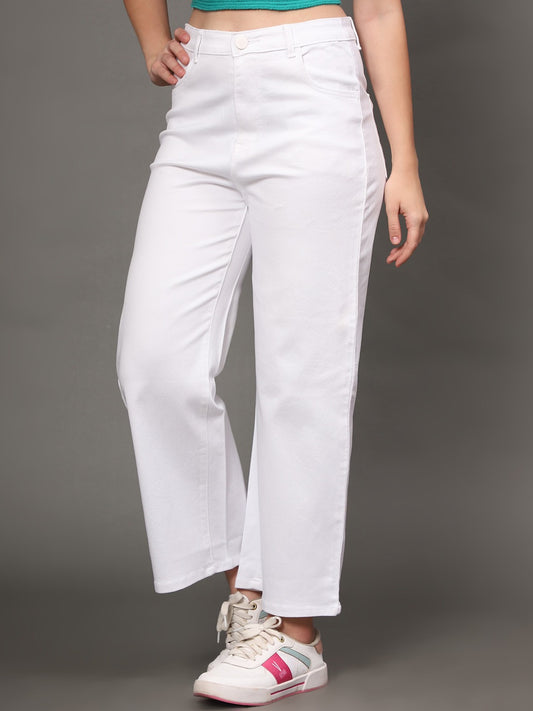 AngelFab Women White Relaxed Fit High-Rise Cropped Cotton Jeans