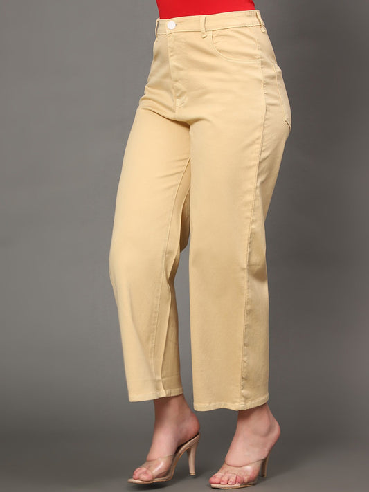 AngelFab Women Yellow Relaxed Fit High-Rise Cropped Cotton Jeans