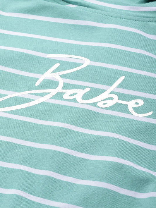Kassually Sea Green & White High Neck Pure Cotton Regular Crop Top