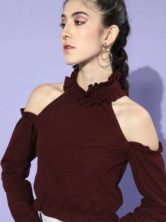Kassually Women Burgundy Solid Stylish Knitted Top