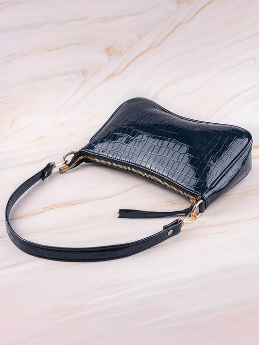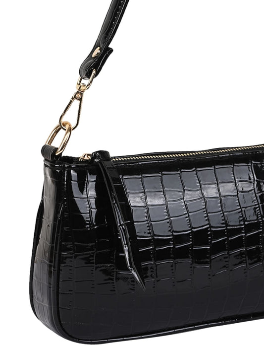Lekhx Black Croc Textured Structured Sling Bag