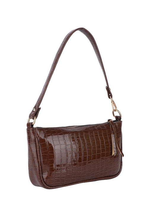 Lekhx Brown Croc Textured Structured Sling Bag