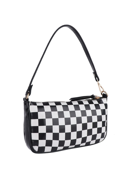 Lekhx Women Black & White Checked Structured Handheld Bag