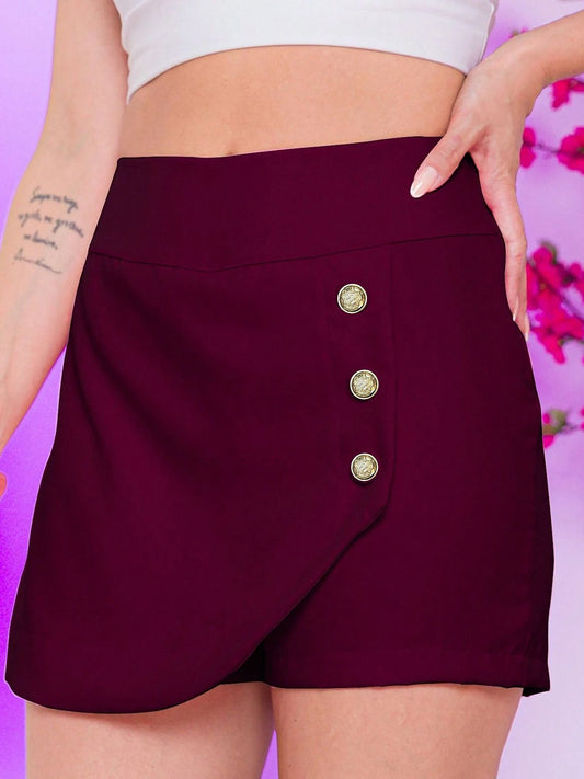 Maroon High-Rise Wrap Curved Hem Mini Skorts