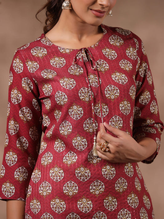 Anubhutee Ethnic Motifs Printed Sequinned Pure Silk Kurta