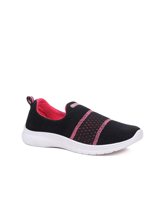 Asian Women Black & Pink Woven Design Slip-On Sneakers