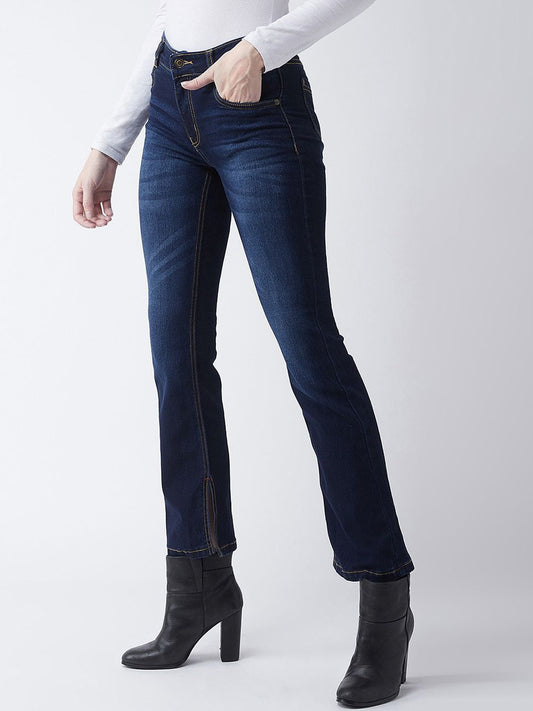 Miss Chase Women Navy Blue Bootcut Mid Rise Clean Look Jeans