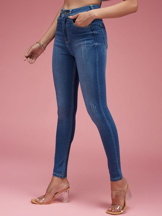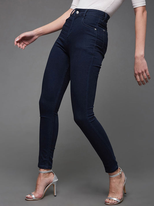 Miss Chase Women Navy Blue Skinny Fit High Rise Denim Jeans