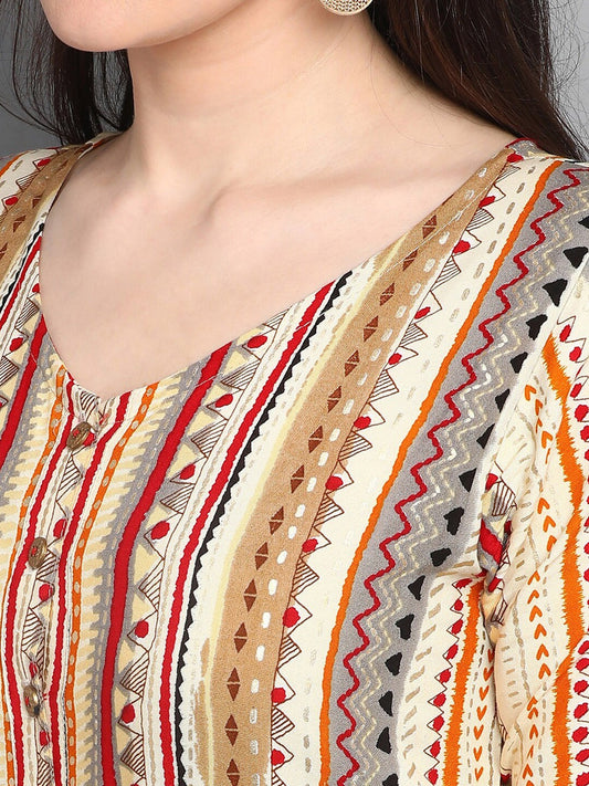 Off White & Multicoloured Foil Printed Basic Jumpsuit