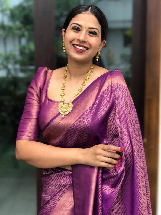 Purple & Gold-Toned Ethnic Motifs Zari Pure Silk Banarasi Saree