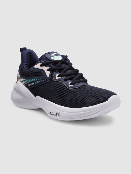 Asian Women Navy Blue Woven Design Mesh Running Shoes