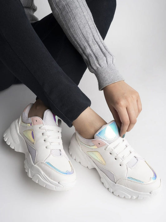 Shoetopia Girls White Color-Blocked Lace-up Sneakers