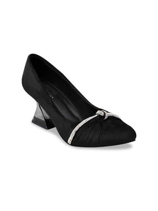 Shoetopia Black Embellished Pointed Toe Ballerinas Flats