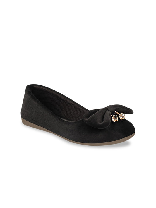 Shoetopia Black Solid Round Toe Suede Ballerinas with Bows