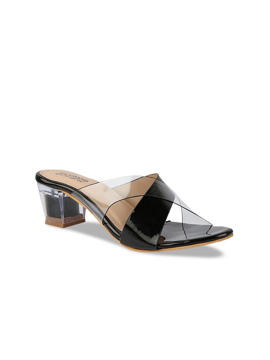 Shoetopia Black & Transparent Colourblocked Heeled Sandals