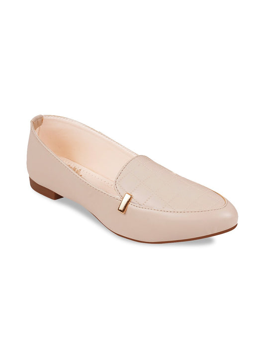 Shoetopia Beige Pointed Toe Textured Ballerinas Flats