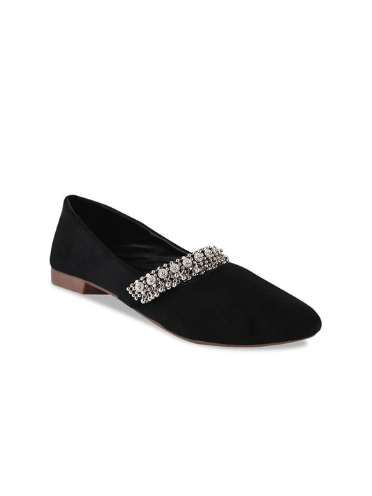 Shoetopia Black Embellished Pointed Toe Suede Ballerinas