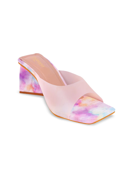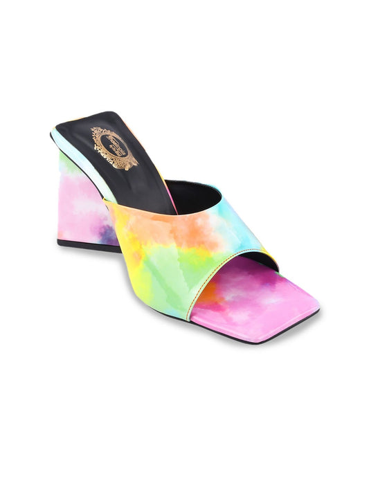 Shoetopia Multicolor Printed Open Toe Block Heels