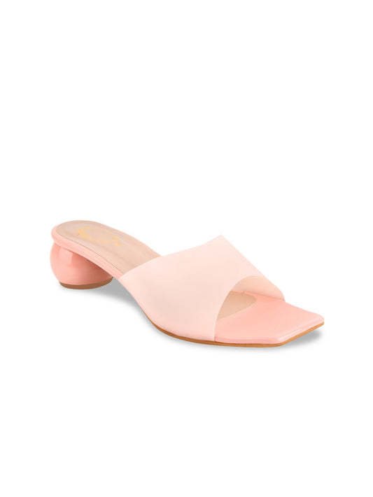 Shoetopia Peach-Coloured Open Toe Block Heels
