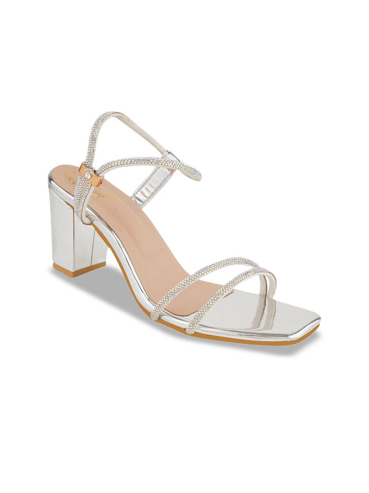 Shoetopia Silver-Toned Embellished Party Block Heels