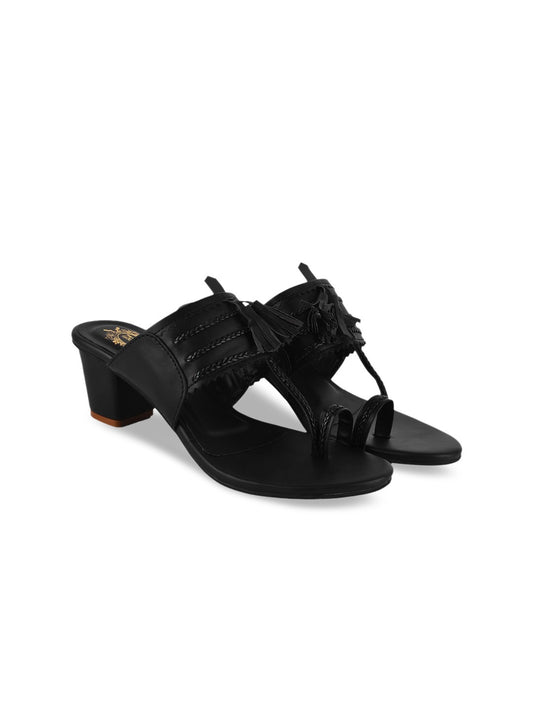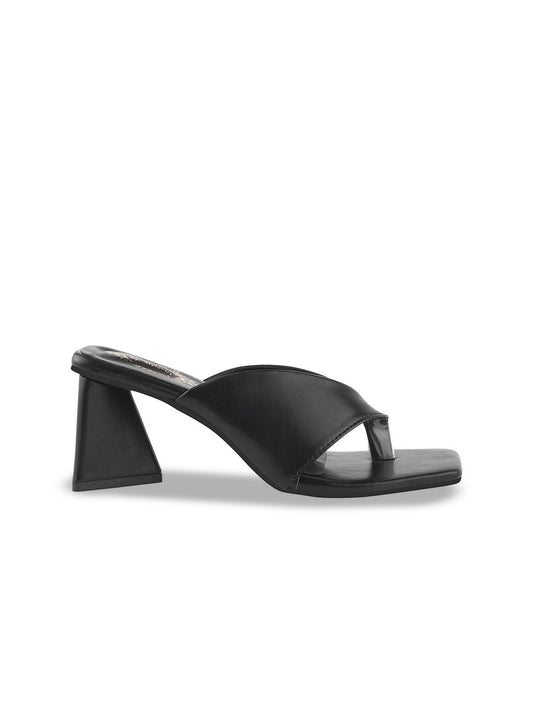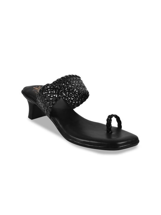 Shoetopia Women Black Open Toe Textured Suede Block Heels