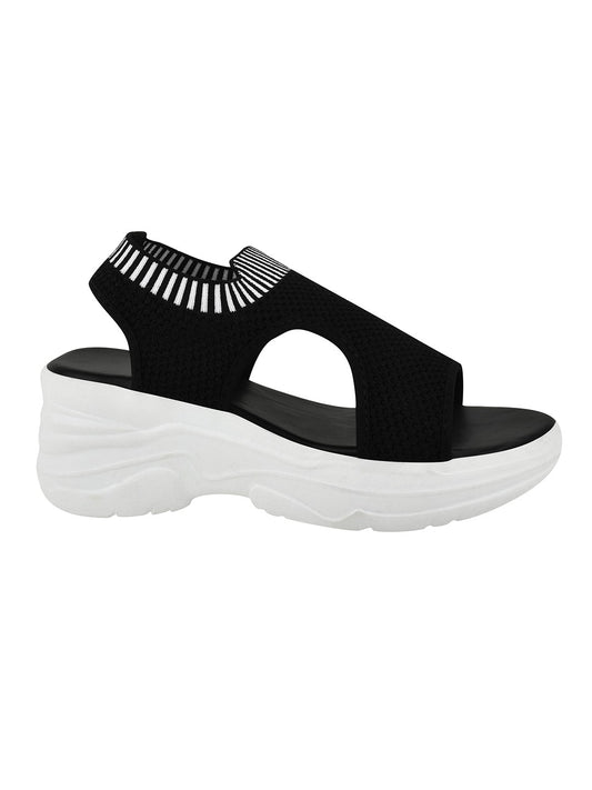 Shoetopia Women Black Textured Open Toe Wedge Heels