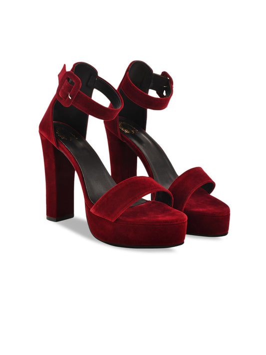 Shoetopia Women Cherry Open Toe Suede Block Heels