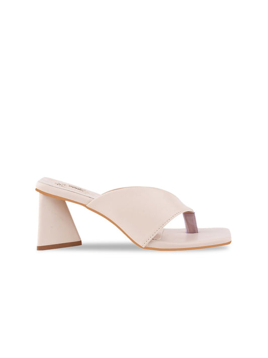 Shoetopia Women Cream-Coloured Solid Block Heels