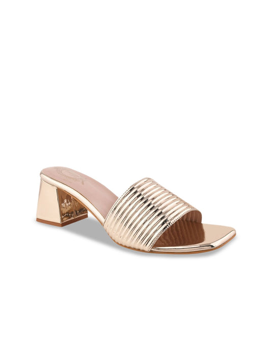 Shoetopia Women Gold-Toned Textured Open Toe Block Heels