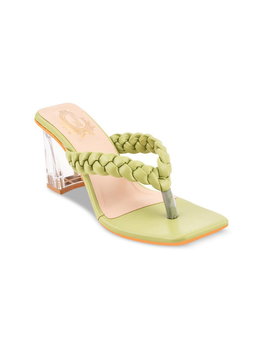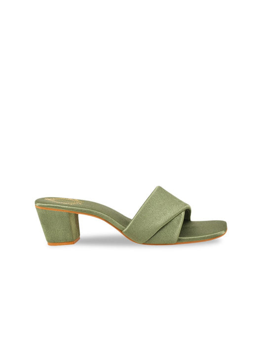 Shoetopia Women Green Open Toe Textured Suede Block Heels