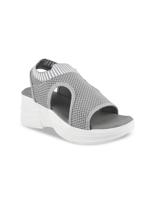 Shoetopia Women Grey Textured Open Toe Wedge Heels