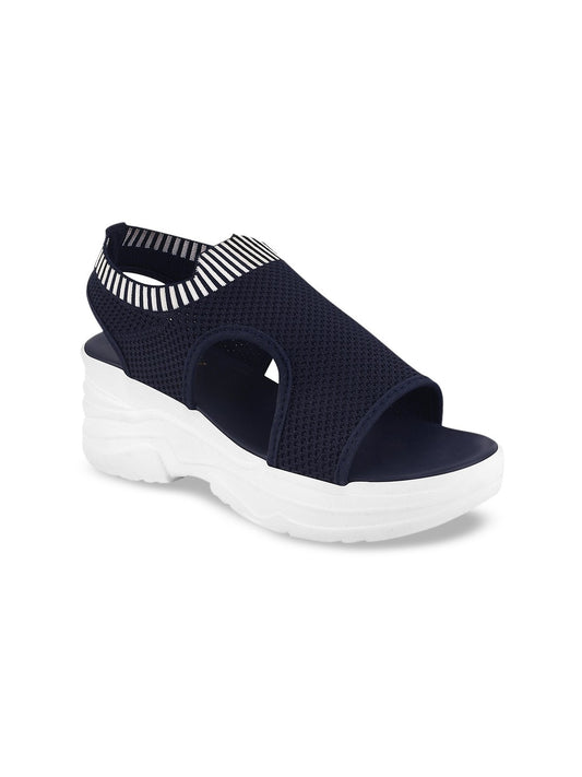 Shoetopia Women Navy Blue Textured Open Toe Wedge Heels