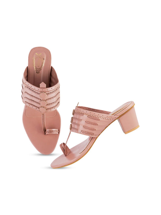 Shoetopia Women Mauve Open Toe Textured Suede Block Heels