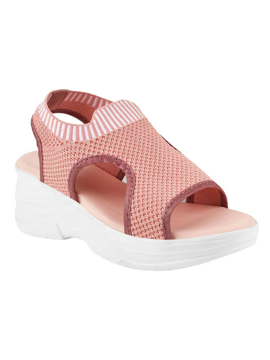 Shoetopia Women Peach Textured Open Toe Wedge Heels