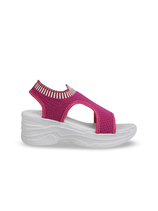 Shoetopia Women Pink Textured Open Toe Wedge Heels