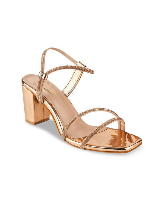 Shoetopia Women Rose-Gold Embellished Party Block Heels
