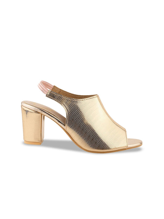Shoetopia Women Rose-Gold Textured Peep Toe Block Heels
