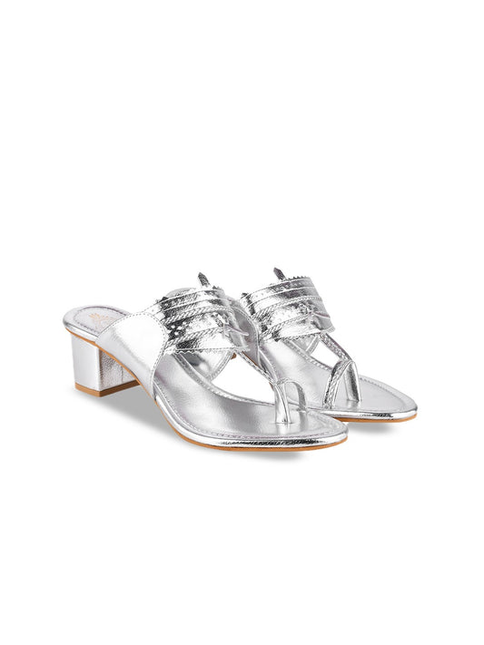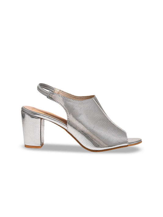 Shoetopia Women Silver-Toned Textured Peep Toe Block Heels