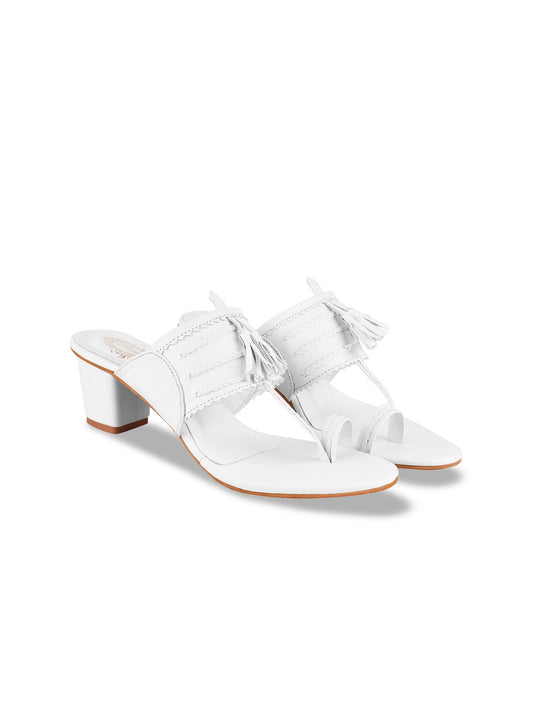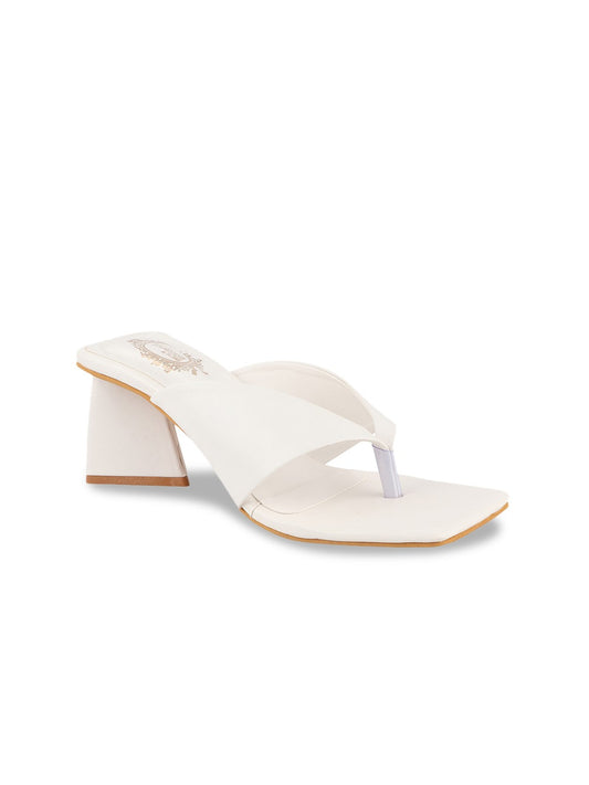 Shoetopia Women White Textured One Toe Block Heels
