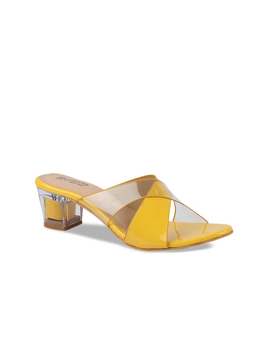 Shoetopia Yellow & Transparent Colourblocked Heeled Sandals