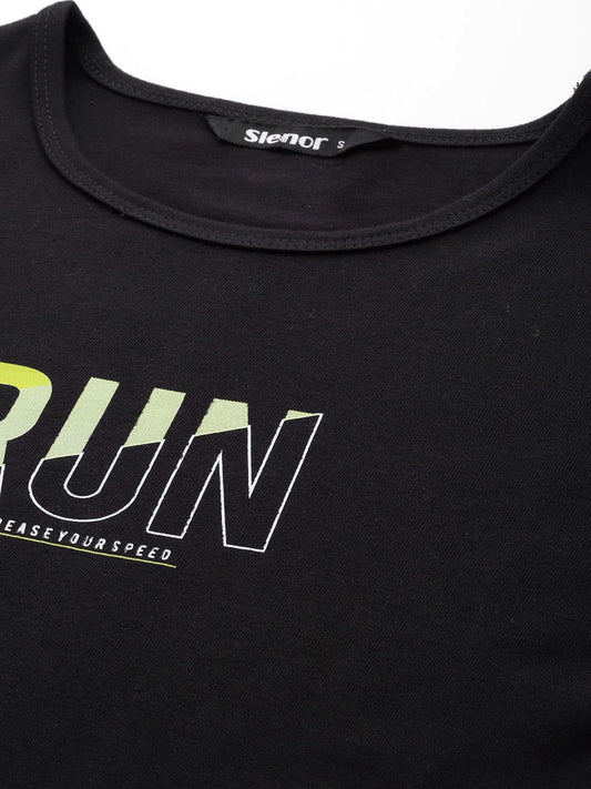 Slenor Black Typography Printed Pure Cotton Crop T-shirt
