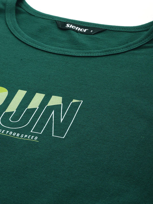 Slenor Green Typography Printed Pure Cotton Crop T-shirt